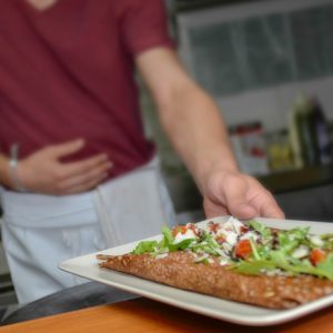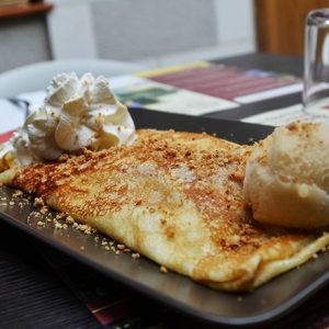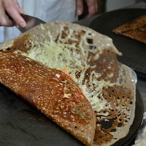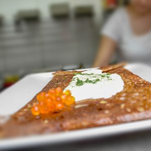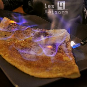 Que ce soit sur la terrasse en été ou sous la verrière en hiver, seul, en famille, entre amis ou collègues … Découvrez nos recettes variées et inventives de crêpes et de galettes tournées à la main et réalisées à la commande.